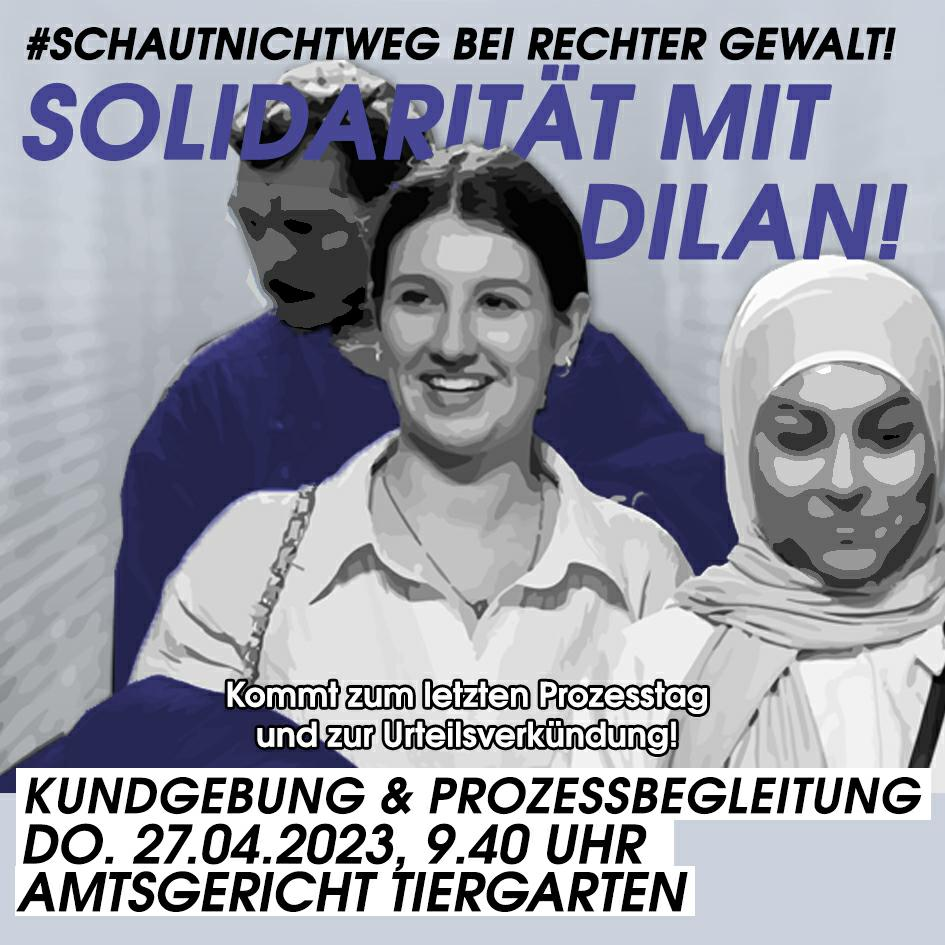 Solidarität mit Dilan! #SchautNichtWeg bei rechter Gewalt! Donnerstag, 27.04.2023 Amtsgericht Tiergarten Wilsnacker Str. 4
