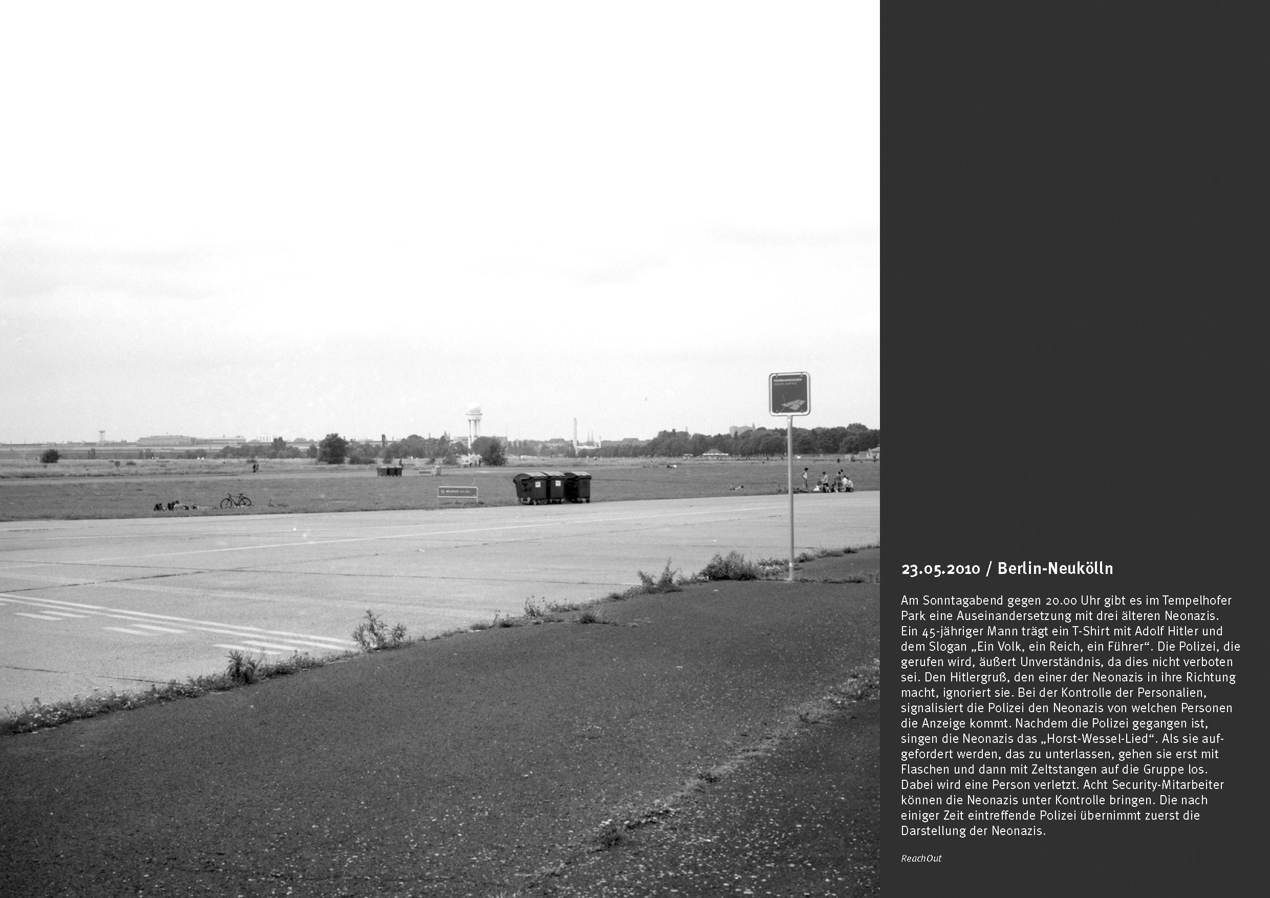 Seit 2002 dokumentiert ReachOut gewalttätige Angriffe mit rechtem, rassistischem, und antisemitischem Hintergrund in einer Berlinweiten „Chronik“.