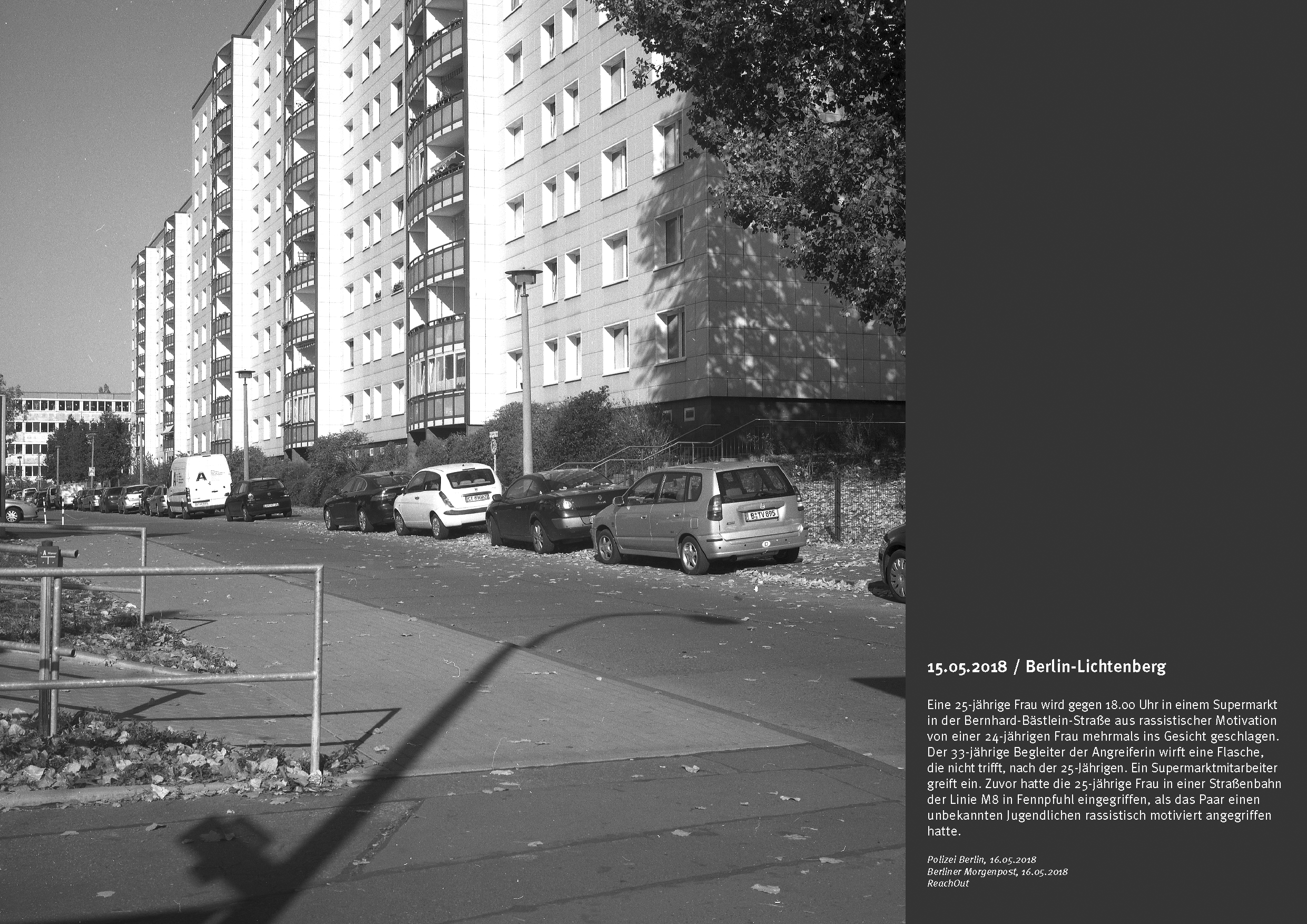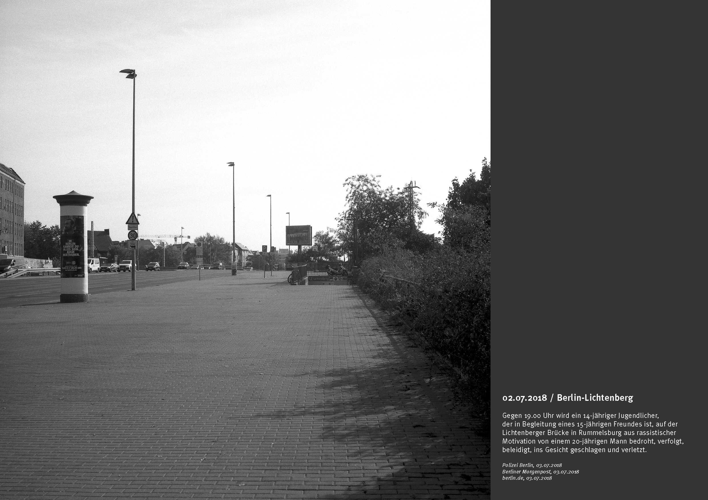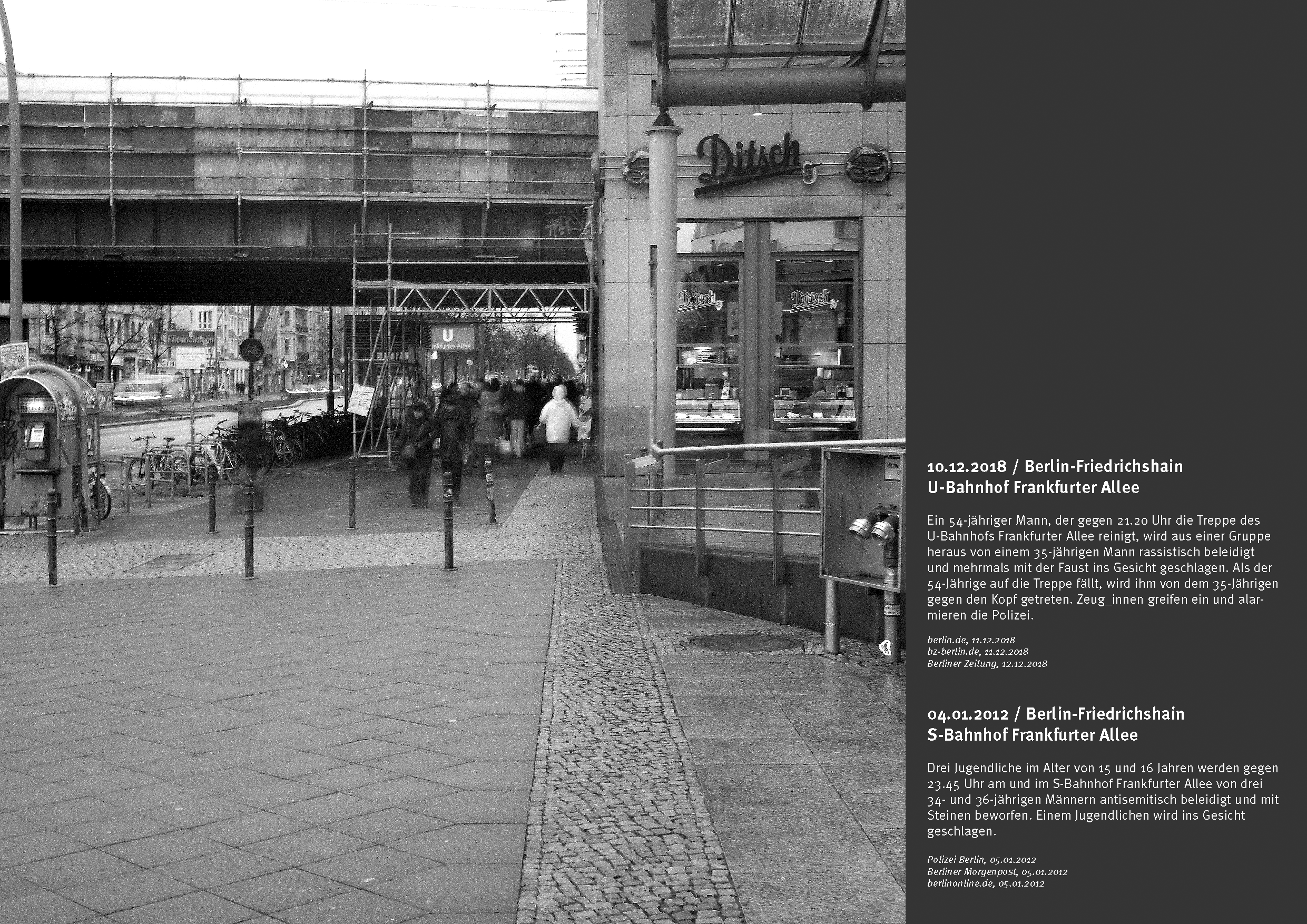 Jörg Möller fotografiert Tatorte. Orte rechter, rassistischer und antisemitischer Angriffe in Berlin, wie die Chronik der Opferberatung ReachOut bezeugt.