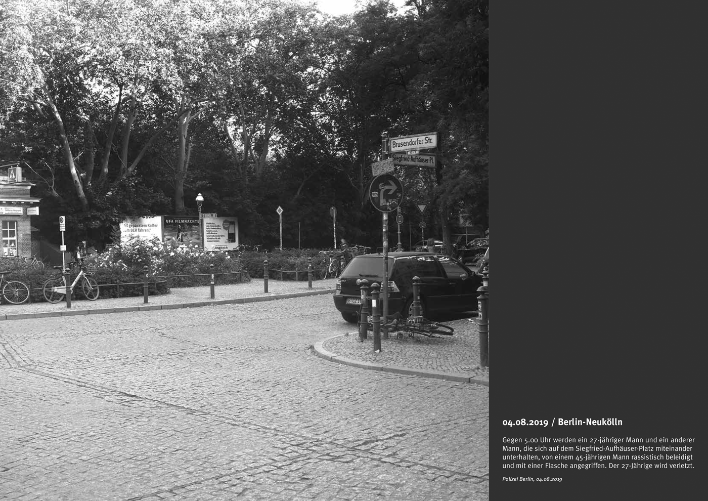 Jörg Möller fotografiert Tatorte. Orte rechter, rassistischer und antisemitischer Angriffe in Berlin, wie die Chronik der Opferberatung ReachOut bezeugt.